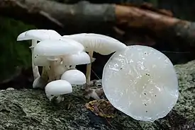 Materiale media legate de ciupercă de porțelan la Wikimedia Commons- Oudemansiella mucida, film în limba engleză