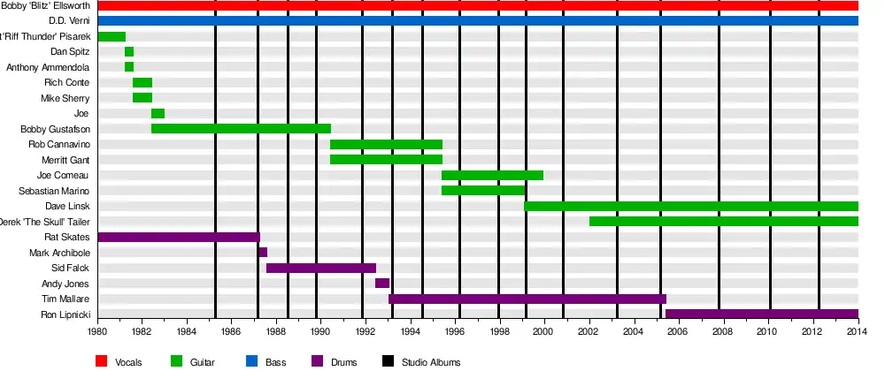 - Bobby "Blitz" Ellsworth – lead vocal (1980–prezent)