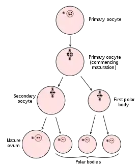 La ambele sexe, una din cele două diviziuni de maturație este reducțională cromozomial, prin procesul numit meioză. Ca atare, nucleul ovului matur (precum spermatozoidul, în cazul masculin) va avea doar jumătate din cromozomii tipici, caracteristici acelei specii. În acest caz, cei doi gameți, feminin și masculin se găsesc în fază haploidă.