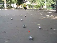 - Jucătorii utilizează bile metalice care au diametrul cuprins între 70,5mm si 80mm, iar greutatea maximă nu poate fi superioară de 800 gr (650 gr min/800 gr max). Ținta (biluța) este din lemn și are diametrul cuprins între 25 și 35 mm.