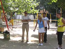 - Pentru început primul jucător aruncă ținta la o distanță cuprinsă între 6 și 10 metri. Ținta trebuie să se afle la cel puțin 1 m distanță de orice obstacol (copac, zid, etc).