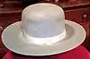 Pălărie de cowboy | Pălărie cu o coroană înaltă, bor larg, cu o banderolă interioară, și o bandă decorativă pe afară. Personalizată prin a cuta coroana și a rula borul.[10] |