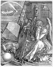 Pătratul magic al lui Albrecht Dürer, sculptat în opera sa Melancolía este considerat primul din artele europene. În pătratul de ordinea patru se obține constanta magică (34) în rânduri, coloane, diagonale principale, și în cele patru submatrici de ordinul (2) în care se poate împărți pătratul, adăugând numerele din colțuri, cele patru numere centrale, numerele centrale ale primelor și ultimelor rânduri (sau coloane) etc. și cifrele centrale ale ultimului rând 1514 fiind anul creației operei.