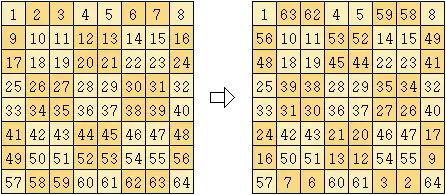 Numărul 2 de pe prima linie se inversează, schimbându-l cu numărul 382, care ia locul numărului 19, care trece în locul lui 399, și care se termină în căsuța numărului 2. Este o metodă logică de inversare a colțurilor.