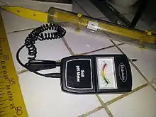 Un pH-metru este un instrument științific cu ajutorul căruia se măsoară activitatea ionilor de hidrogen în soluțiile pe bază de apă, care indică aciditatea sau alcalinitatea exprimată ca și pH.[2] Un pH-metru măsoară diferența de potențial electric între un electrod de pH și un electrod de referință, și deci un pH-metru este uneori numit "pH-metru potențiometric". Diferența de potențial electric este asociată cu aciditatea sau pH-ul soluției.[3] PH-metrul este folosit în multe aplicații variind de la experimente de laborator până la controlul calității.[4])