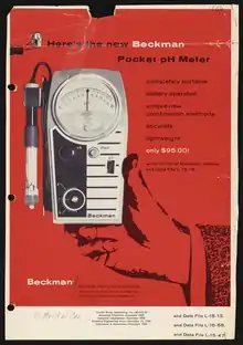 În octombrie 1934 Arnold Orville Beckman a înregistrat primul patent pentru un instrument chimic complet pentru măsurarea pH-ului, U. S. Patent No 2,058,761, pentru "acidimetru", redenumit mai târziu pH-metru. Beckman a dezvoltat prototipul ca un profesor asistent de chimie de la Institutul de Tehnologie din California, atunci când i s-a cerut să elaboreze o metodă rapidă și precisă de măsurare a acidității sucului de lamaie, pentru California Fruit Growers Exchange (Sunkist). Pe 8 aprilie 1935, Beckman a redenumit National Technical Laboratories axate pe fabricarea de instrumente științifice, cu numele Arthur H. Thomas Company, ca și distribuitor pentru pH-metrele lui.[24]:131–135 În primul an de vânzări, 1936, compania a vândut 444 de pH-metre pentru suma de $60.000. În anii următori, compania vândut milioane de unități.[25][26] În 2004 pH-metrul Beckman a fost desemnat ca și un Reper al Istoriei Chimiei Naționale de către Societatea Chimică Americană, în semn de recunoaștere a importanței sale ca primul pH-metru electrinic comercial de succes.[27]
