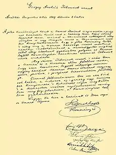 László Batthyány și un alt ofițer i-au prezentat lui Chrurloff răspunsul lui Görgey, prin care se cerea ca toți ungurii să fie eliberați, nu doar cei care au luptat în război. De asemenea, Görgey a afirmat că va accepta ca unul dintre prinții ruși să poarte Coroana Sfântului Ștefan.