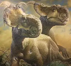 - Anthony R. Fiorillo and Ronald S. Tykoski (). „A new species of the centrosaurine ceratopsid Pachyrhinosaurus from the North Slope (Prince Creek Formation: Maastrichtian) of Alaska”. Acta Palaeontologica Polonica. 57 (3): 561–573. doi:10.4202/app.2011.0033