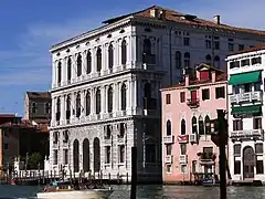 Palatul este, de fapt, format din două clădiri diferite, care au fuzionat în secolul al XVII-lea. Partea mai veche, realizată într-o arhitectură venețiano-gotică de pe la 1400 și care conține frize bizantine din secolul al XII-lea, a fost inițial cunoscută sub numele de Palatul Minotto; partea mai nouă, Palatul Barbarigo, a fost construită în secolul al XVII-lea.