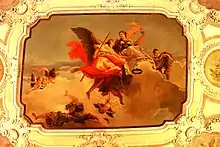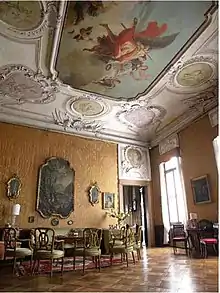 Gianbattista Tiepolo și-a început activitatea sa aici în 1741, pictând spațiile monocrome care încadrează pânza centrală, "Triumful virtuții și nobleței asupra ignoranței". Pictura originală în ulei face parte acum din colecția Cà Rezzonico și a fost înlocuită aici cu o copie prin anii 1900.