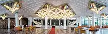 Cele două holuri ale palatului au fost proiectate și realizate în așa fel ca să poată găzdui cele mai ample și prestigioase expoziții de artă plastică, de prezentare a diverselor aspecte din economie, viața socială, din relațiile dintre oameni de afaceri, firme comerciale, concerte etc.