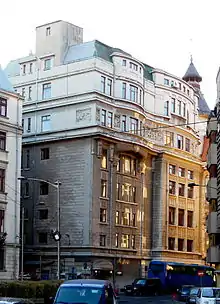 La exteriorul clădirii, la nivelul etajului 4, sunt prezentate diverse scene din momente reprezentative ale istoriei României (Războiul de Independență, Intrarea lui Mihai Viteazul în Alba Iulia și Încoronarea Regelui Ferdinand), executate în altorelief.