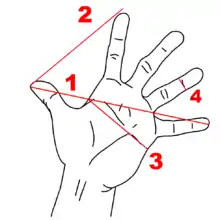 Palma a fost o măsură mică de lungime, egală cu „cât să poate întinde [palma] din vârful degetului celui mic până în vârful degetului celui mare”. Expresia „o palmă de loc” s-a păstrat în limba română cu sensul de distanță mică. Cu palma se măsurau îndeosebi distanțele mici ca de exemplu adâncimea gropilor, mărimea scândurilor sau elemente de construcție.[1]