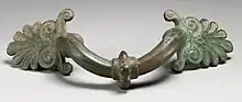Majoritatea primelor forme egiptene ale motivului apar mai târziu în Creta, Mesopotamia, Asiria și Persia Antică, inclusiv lotusul și marginea cu muguri.[11] Sub forma de palmetă care apare cel mai frecvent pe ceramica greacă,[12] adesea intercalată cu scene și fapte eroice, același motiv e legat într-o linie exterioară în formă de frunze sau de muguri de lotus. Se observă că linia exterioară a evoluat dintr-o friză alternativă de lotus stilizat și palmetă.[13] Lucrul ăsta anticipează forma pe care a luat-o de obicei - de la sculptura renascentistă până la fântânile baroce - a interiorului unei jumătăți de scoici, în care frunzele de palmier au devenit evantaiul cochiliei iar volutele rămân la convergența evantaiului. Aici forma a fost asociată cu Venus sau Neptun și a fost în mod obișnuit flancată de o pereche de delfini sau a devenit un vehicul tras de cai de mare. Mai târziu, această linie exterioară circulară sau ovală a devenit un motiv în sine, formând o formă de C deschisă, cu cele două volute în creștere la vârfuri. O mulțime de mobilă barocă și rococo, stucaturi sau lucrări din fier forjat de porți și balcoane sunt alcătuite din combinații mereu variate, de volute în formă de C, fie pe cont propriu, spate în spate, fie în sprijinul palmetelor pline.