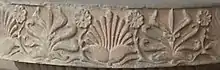 Acroteră greacă antică de marmură decorată cu o palmetă dublă, circa 350–325 î.Hr., în Muzeul Metropolitan de Artă