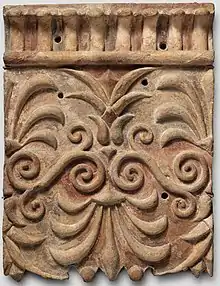 Conform lui Boardman, chiar dacă frizele de lotuși sau cele de palmete erau cunoscute în Mesopotamia cu secole înainte, combinația nefirească a diferitelor elemente botanice care nu au nicio relație în sălbăticie, cum ar fi palmeta, lotusul și uneori rozeta, 3 o inovație pur grecească, care a fost apoi adoptată pe o scară geografică foarte largă în toată lume elenistică.[16]