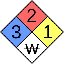 ![]() Semnul NFPA 704, denumit și „romb de incendiu”. Consultați NFPA 704 pentru detalii. |