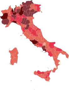 Pe 15 martie, erau 24.747 de cazuri confirmate, 1.809 de decese și 2.335 de persoane recuperate, rămânând 20.603 de cazuri active în Italia. Marea majoritate a celor decedați este formată din persoane peste 65 de ani.[1]