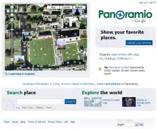 Panoramio a fost un sit web specializat în partajarea fotografiilor care au geolocație. Fotografiile acceptate care au fost încărcate pe sit pot fi accesate în Google Earth și Google Maps. Scopul sitului este de a permite utilizatorilor Google Earth să afle mai multe despre o anumită zonă geografică prin vizualizarea fotografiilor pe care alți utilizatori le-au făcut în acel loc. Situl este disponibil în mai multe limbi.