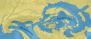 Marea Sarmatică s-a format ca urmare a fragmentării Oceanului Tethys, al cărui ultim vestigiu de astăzi este domeniul mediteranean.[1] Delimitarea ei s-a realizat în timpul Oligocenui (33,9–23,03 MA î.e.n), prin separarea apelor oceanice septentrionale de cele sudice prin ridicarea munților Alpi, Carpați, Dinarici, Taurus și Elburz (Alborz). În timpul existenței ei, Parathetys s-a reconectat – intermitent – cu Oceanul Tethys sau cu succesorii săi, Marea Mediterană și Oceanul Indian.