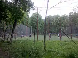 Aproape de ieșirea de pe strada Primăverii se află un teren de fotbal cu nocturnă.