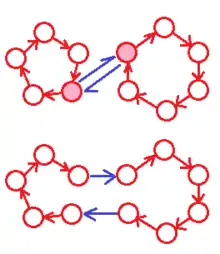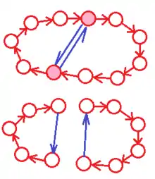 Observație : numărul n − k (care are aceeași paritate cu n + k) poate fi văzut ca număr minim de transpoziții în care se descompune permutarea dată. Fiecare ciclu contribuie la acest număr cu lungimea lui minus 1, deci în total avem lungimile însumate minus numărul de cicluri. De exemplu, permutarea de 8 simboluri de mai sus se descompune în transpoziții astfel :