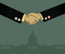 Parteneriatele public-private sunt adesea reprezentate de o strângere de mână, simbolizând partenerii privați și publici care ajung la un acord.