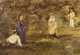 Manet a reprezentat un joc de crichet, un joc în vogă în societatea bună a vremii, în grădina prietenului său Alfred Stevens. Acest joc permitea să se întâlnească în aer liber într-o atmosferă relaxată, la marginea societății încorsetate a vremii. Remarcăm prezența în acest tablou a lui Alfred Stevens, Paul Rodier, Victorine Meurent și Alice Legouvé.