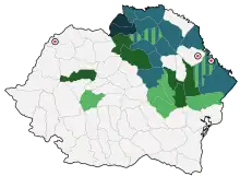 Punctele arată locurile unde s-au ținut congrese regionale sau naționale ale PNSR-ului. În albastru, județele unde LANC-ul a câștigat peste media națională, la cel puțin una din alegerile parlamentare din acele vremuri; în verde, județe care și-au dat mai mult de 5% din voturi pentru Garda de Fier, de-a lungul alegerilor. Nuanța întunecată se referă la județul care a îndeplinit criteriile, pe parcursul a cel puțin un ciclu electoral (Neamț și Tutova sunt băgate din cauza alegerilor parțiale din 1931 și 1932).