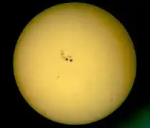 Structura de tip granule a suprafeței Soarelui și a petelor solare (dimensiune de aproximativ 20 000 km). Lumină vizibilă.