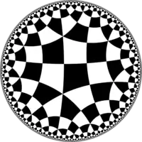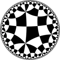 ![]() Simetrie *∞222 cu un unghi (limită) de 0° în unul dintre colțurile sale din vârful său ideal aflat la infinit. |
