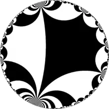 | Pe modelul discului Poincaré al planului hiperbolic | |