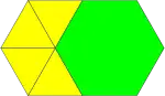 ![]() Trei hexagoane înconjoară fiecare triunghi |