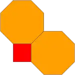 ![]() O pavare semiregulată sau uniformă are o singură configurație a vârfului, dar două sau mai multe tipuri de fețe. |