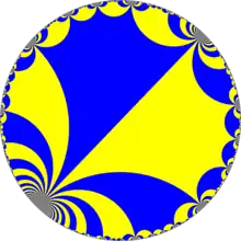 | Pe modelul discului Poincaré al planului hiperbolic | |