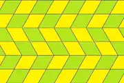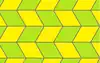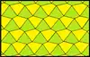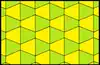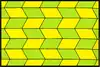 | O variantă izogonală cu două tipuri de fețe, văzute ca o pavare pătrată snub cu perechi de triunghiuri combinate în romburi | Pavările pătrate topologice pot fi realizate cu fețe concave și cu mai mult de o latură în comun la două fețe; această variantă are 3 laturi comune | O variantă 2-izoedrică cu fețe rombice |