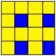 Există 9 colorări uniforme distincte ale unei pavări pătrate. Enumerarea culorilor prin indici pe cele 4 pătrate din jurul unui vârf este: 1111, 1112(i), 1112(ii), 1122, 1123(i), 1123(ii), 1212, 1213, 1234. Cazurile (i) au simetrie de reflexie simplă, iar cele (ii) simetrie de reflexie translată. Trei pot fi văzute în același domeniu de simetrie drept colorări reduse: 1112i din 1213, 1123i din 1234 și 1112ii redus de la 1123ii.
