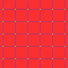 Această pavare este, de asemenea, legată din punct de vedere topologic, ca parte a secvenței de poliedre regulate și pavări cu patru fețe pe vârf, începând cu octaedrul, cu simbolul Schläfli {n,4} și diagrama Coxeter ![]()