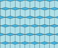 Pavarea rombică este folosită și ca model pentru parchetări[11] și pentru acoperirea podelelor sau a pereților, uneori cu variații în formele romburilor.[12] Ea apare în mozaicurile antice grecești din pardoseala din Delos[13] și în pavarea podelelor italiene din secolul al XI-lea,[14] deși dalele cu acest model din Catedrala din Siena sunt dintr-o epocă mai recentă.[15] În matlasări este cunoscut încă din anii 1850.[16][14][17]. În aceste aplicații decorative romburile pot apărea în mai multe culori, dar de obicei se folosec trei niveluri de umbrire, cele mai strălucitoare pentru romburi cu diagonale lungi orizontale și mai întunecate pentru romburi cu celelalte două orientări, pentru a le spori aspectul tridimensional.