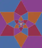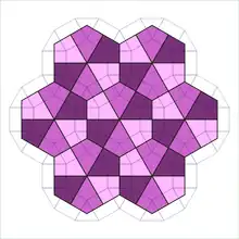 Simetria față de centru permite ca planul să fie umplut de romboizi cu dimensiuni crescătoare, sau cu o topologie ca a pavării pătrate, V4.4.4.4. Mai jos este un exemplu cu simetrie hexagonală diedrică.