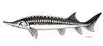 | Acipenser ruthenus[49][50][51] | Linnaeus, 1758 | Cegă | Nativă | Bulgaria, Georgia, România, Rusia, Turcia, Ucraina | Vulnerabilă[52] | ![]() |