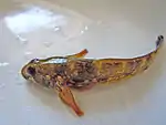 | Salmo trutta[104][105][106] | Linnaeus, 1758 | Păstrăv | Introdusă | Bulgaria, România, Rusia, Turcia, Ucraina | Neamenințată cu dispariția[107] | ![]() |