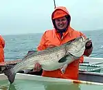| Salmo labrax (Salmo trutta labrax)[100][101] | Pallas, 1814 | Păstrăv de mare | Nativă | Bulgaria, Georgia, România, Rusia, Turcia, Ucraina | Neamenințată cu dispariția[102] | |