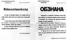 ![]() Anunțul cu privire la executarea a 2.300 de civili la Kragujevac ca represalii pentru uciderea a 10 soldați germani de către partizanii iugoslavi | |