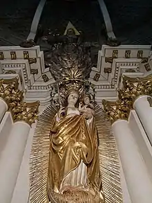 Aceasta a fost realizată din lemn de tei în stil renascentist între anii 1510 și 1515. Artistul a rămas neidentificat. Înălțimea statuii este de 227 cm. O reprezintă pe Fecioara Maria în mandorlă (îmbrăcată în raze de soare), cu luna sub picioare și douăsprezece stele în jurul capului. Are, de asemenea, o coroană pe cap, în mâna dreaptă un sceptru, în brațul stâng pe pruncul Isus. În 1798 a fost recunoscută ca făcătoare de minuni de episcopul Ignațiu Batthyány, care caracterizat-o drept „ajutor de protecție contra ereticilor”.