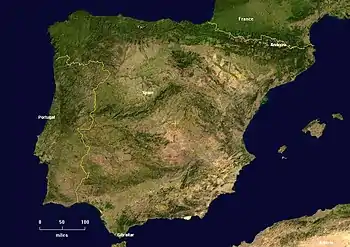 Spania, ocupă cea mai mare parte a peninsulei, inclusiv centrul, estul și nord-vestul