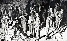 Deținuții ieșind din mină sub paza gardienilor