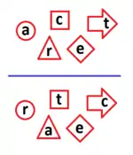 Din două permutări se poate obține prin operația algebrică de compunere a permutărilor o a treia permutare; în exemplul de aici, permutarea compusă va fi anagrama CARTE ---> ECART :