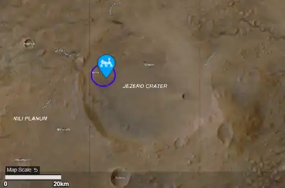 - „Perseverance Rover Landing Site Map”. NASA Mars 2020 Mission. NASA. Accesat în .
