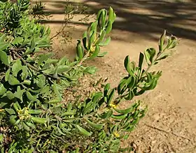 Persoonia rigida[2] este un arbust originar din statele New South Wales și Victoria în estul Australiei. Întâi colectată de către George Caley în 1804, a fost una din multele plante australiene descrise pentru prima dată de botanistul scoțian Robert Brown în 1830. În cadrul genul Persoonia, specia P. rigida este clasificată în grupul Lanceolata, un grup de 54 de specii înrudite cu flori similare, dar frunze foarte diferite. Aceste specii se încrucișează de multe ori între ele acolo unde conviețuiesc.[3] Planta crește ca un arbust mic, înalt de doar 1 metru, și are ramurile și frunzele noi păroase. Frunzele înguste măsoară între 1,5 și 4,5 centimetri lungime și între 0,4 și 1,9 centimetri lățime. Acestea sunt spatulate sau obovate ca formă, cu marginile întoarse în jos. Inflorescențele apar în timpul verii și sunt compuse din flori galbene cu periant păros.[4] Proporția florilor care produc fructe este neobișnuit de mare în cazul P. rigida comparativ cu alți membri ai genului.[5]